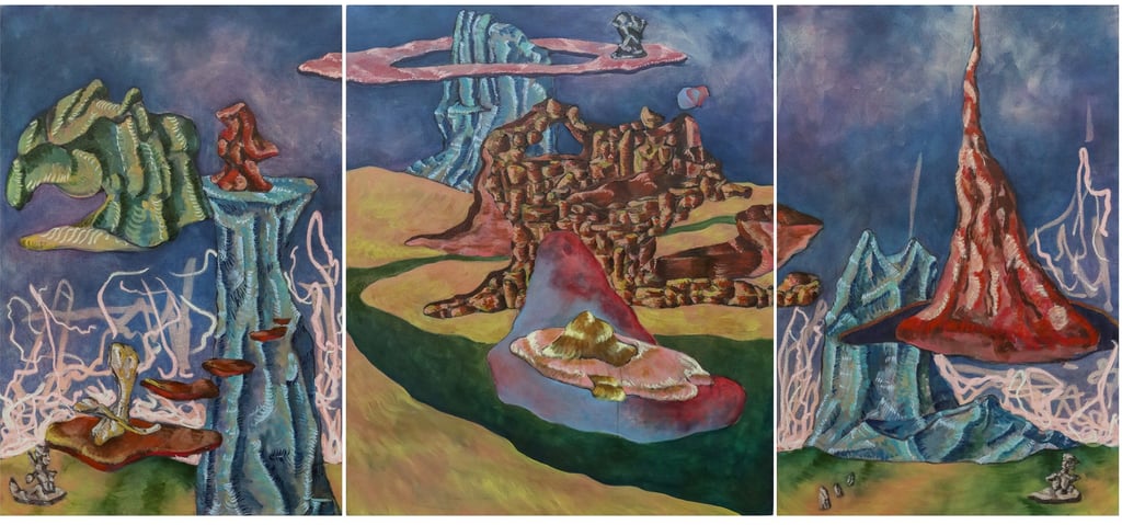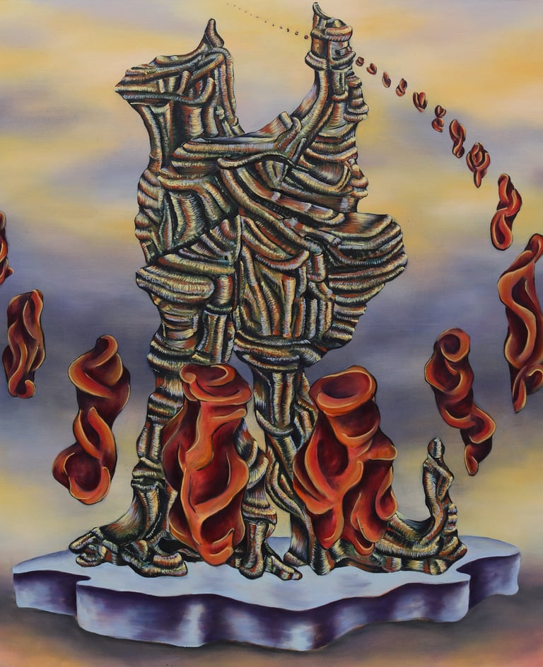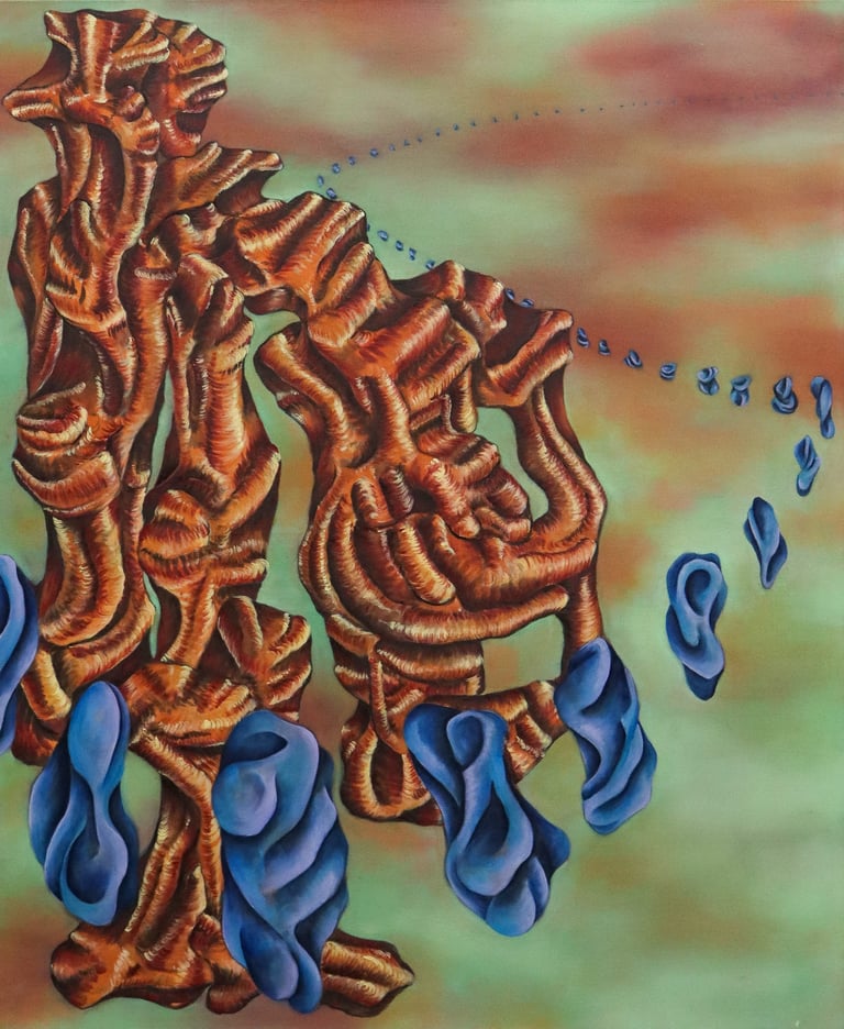 Birth of new life into this mystical world, Oil paint and pastel on canvas