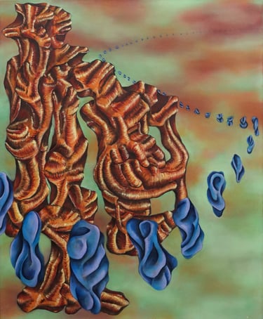 Subconscious in a wake of a dream, Oil paint and charcoal on canvas